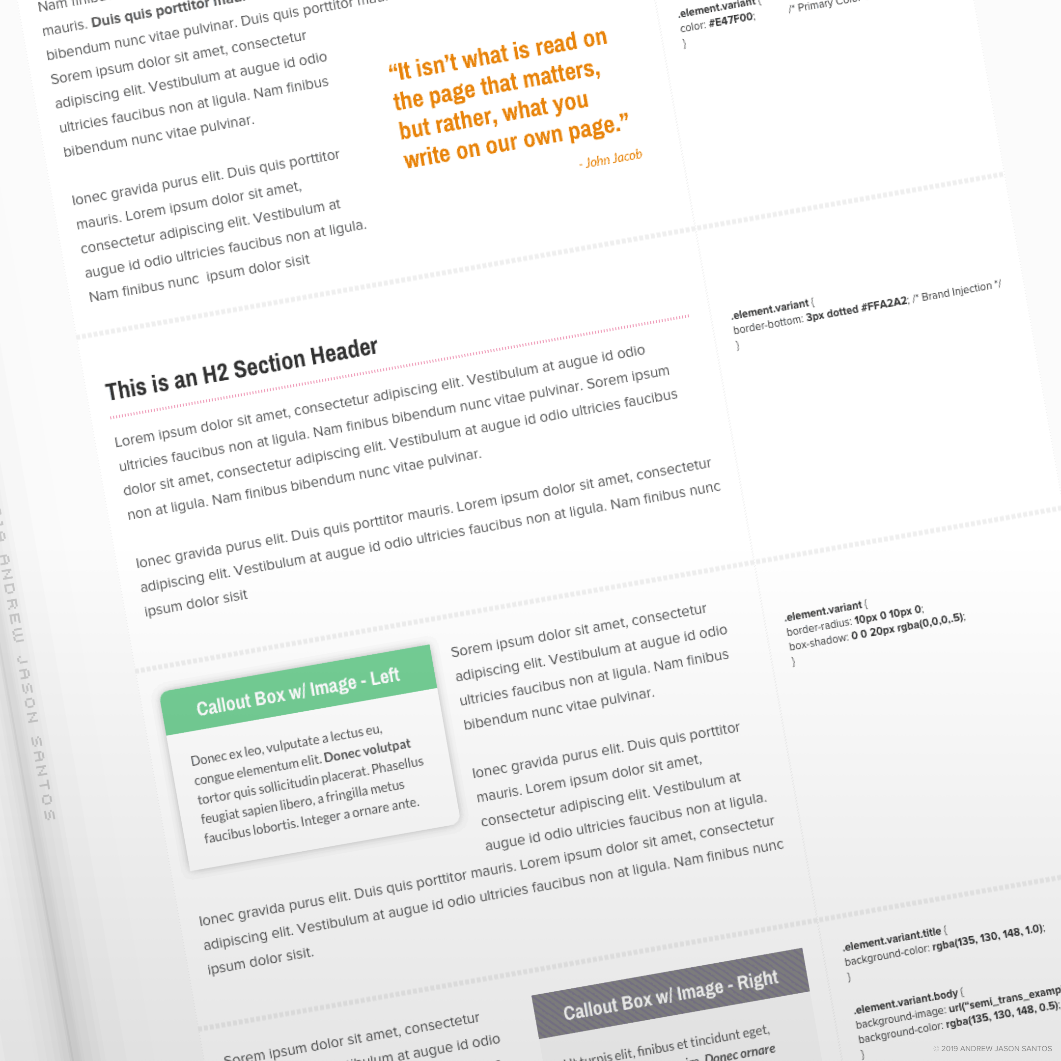 Rather than go into to much further detail here, I have provided the ShortCode Bible guide in full within this very deep dive (top of page for pages, bottom of page for spreads). The guide goes much deeper into the specific rule sets for each and every available elements to appear on any page of web content to be built out ( there is even CSS code included in the margins). Building out design systems and philosophies is something I enjoy very much, and would like to do again and again in the future, so even though these types of guides are a bit arduous and seemingly tedious to make, I see them as a necessary, sometimes even righteous way of bringing content together, aligning several different teams and users together along the way.